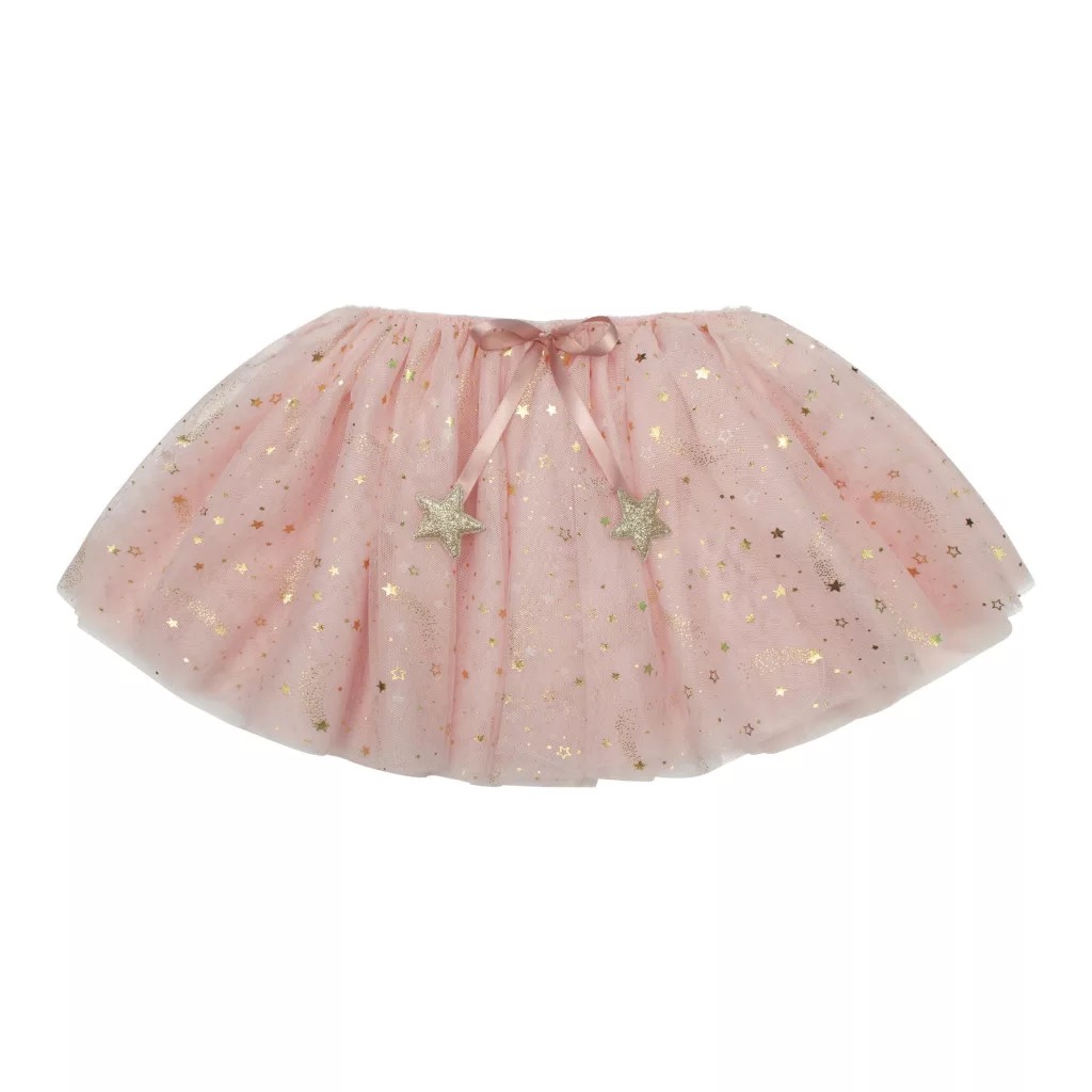 Lépj a csillagok közé ebben a mesés, rózsaszín csillaghullásos tütüben! Az aranyszínű csillagképekkel díszített, puha tüll szoknya határtalan képzelőerőt és varázslatos pillanatokat ígér a kicsiknek.