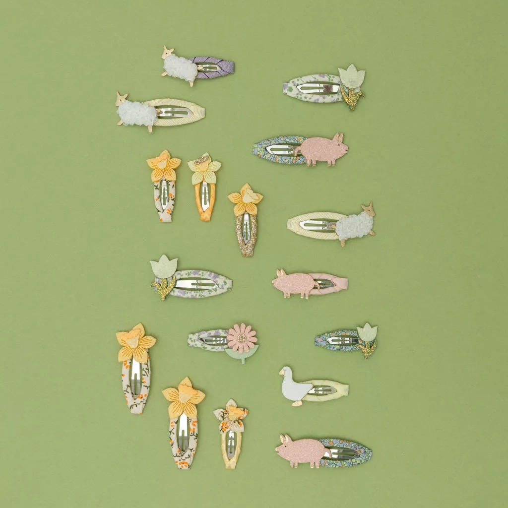 Vidám vidéki hangulat minden frizurában! Ezek a bájos farmos mini hajcsatok kedves kis haszonállatokkal és friss virágokkal díszítettek — tökéletes kiegészítők tavaszi kalandokhoz és mindennapi viselethez.