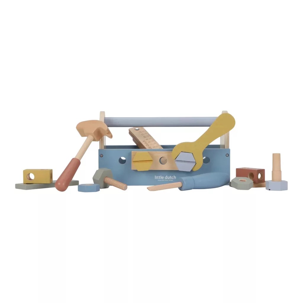 Minden kis ezermester legfontosabb segítőtársa! A Little Dutch fából készült szerszámos láda mindent tartalmaz, amire egy kezdő barkácsolónak szüksége lehet: kalapácsot, csavarhúzót és villáskulcsot, amelyekkel a gyerekek saját alkotásaikat készíthetik el.